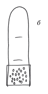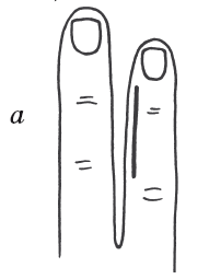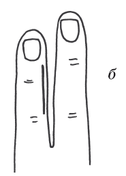 Рис. 46. Окрашивание бель-меридиана на указательных пальцах: а) на левой кисти, б) на правой кисти