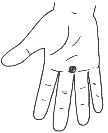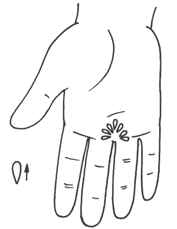 Рис. 56. Расположение семян на ладони при лечении опущения матки