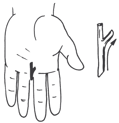 Активизировать работу яичек поможет воздействие на зону наружных половых органов на ладони веточкой (рис. 67).