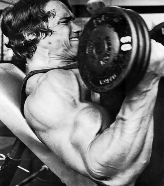 Выполнение: (1) опуститесь на наклонную скамью, взяв гантели в каждую руку. (2) Выставив локти вперед, согните руки с гантелями вперед и вверх до уровня плеч. Плавно опустите гантели и сделайте паузу в конце, чтобы не пользоваться моментом движения для резкого маха при следующем повторении. Я обнаружил, что добиваюсь наилучших результатов, пронируя и супинируя запястья во время движения: поворачивая запястья ладонями друг к другу в нижней точке движения, а затем поворачивая запястья ладонями вверх (мизинец выше большого пальца) в верхней точке движения.