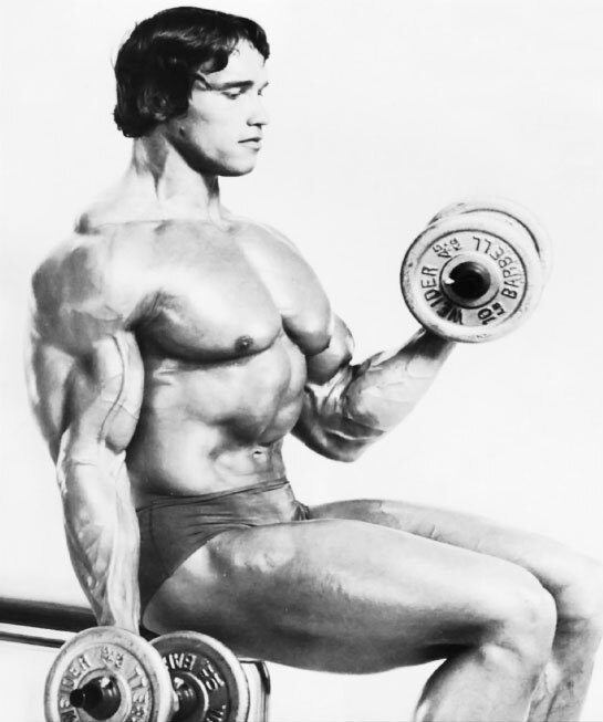 Выполнение: (1) сядьте на край скамьи или прислонитесь спиной к опоре наклонной скамьи, установленной в вертикальном положении. Возьмите гантели в каждую руку и вытяните руки вдоль туловища, ладонями к телу. (2) Удерживая локти неподвижно, как шарниры, поднимите гантели вперед и вверх, повернув запястья таким образом, чтобы большие пальцы смотрели наружу, а ладони были направлены вверх во время движения. Поднимите гантели так высоко, как только можете, и напрягите бицепсы в верхней точке движения, чтобы добиться максимального сокращения. Опустите гантели вниз плавным движением по широкой дуге, полностью выпрямив руки и потянув бицепсы.