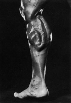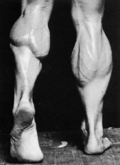 О таком развитии мышц голени, как у Кена Уоллера, многим другим культуристам приходится только мечтать. Икроножная мышца, лежащая над плоской треугольной камбаловидной мышцей, массивная и рельефная вплоть до лодыжки