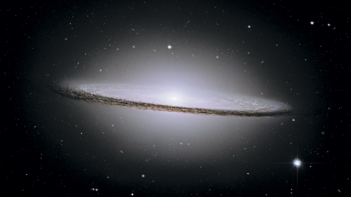 М104, или галактика Сомбреро, – одна из самых знаменитых на нашем небе. Все дело в характерной морфологии: у нее почти эллиптический ровный звездный балдж и очень четко очерченный диск с полосой из темного пылевого вещества. Галактика Сомбреро повернута к нам почти ребром, но диск слегка наклонен в нашу сторону