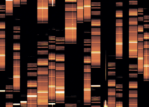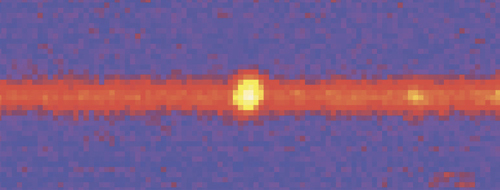 Перед вами довольно необычный вид галактик. Это изображение показывает спектры нескольких далеких галактик, за которыми мы наблюдаем при помощи многообъектного спектрографа VIMOS. Спектроскопия рассеивает свет в соответствии с частотой подобно радуге, что позволяет нам детально исследовать выбросы галактик и изучать информацию об их движении и химическом составе. Каждая вертикальная полоса – это спектр одной галактики, а яркие горизонтальные линии – характеристики излучения в нашей атмосфере. Более слабые вертикальные линии, видимые в некоторых полосах, – излучения самих галактик