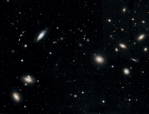 Скопление Кома (скопление Волосы Вероники) – самая массивная структура в близлежащей Вселенной, где тысячи галактик собираются на участках с высокой плотностью. Кластеры представляют собой части Вселенной, которые были самыми большими флуктуациями плотности в материальном поле вскоре после Большого взрыва. Под постоянным воздействием гравитации эти возмущения со временем нарастали и накапливали материю, превращаясь в гигантские структуры, подобные этой. Кластеры населены одними из наиболее старых и массивных галактик во Вселенной (эллиптических) и могут со временем захватывать новые галактики, которые трансформируются по мере их пересечения со скоплениями. На этом изображении видна довольно голубая (по сравнению с «красными и мертвыми» эллиптическими и линзовидными галактиками) спиральная галактика, где образуются звезды. Понимание эволюции галактик в кластерах – важная область современных исследований космоса