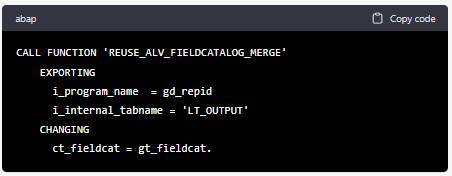Извините за проблему. Ошибка возникает из-за того, что параметр i_internal_tabname неправильно указан в функции 'REUSE_ALV_FIELDCATALOG_MERGE'. Чтобы исправить ошибку, измените значение параметра i_internal_tabname на 'LT_OUTPUT', который является именем внутренней таблицы с результатами выборки. Вот исправленный код: