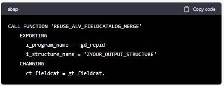 Извините за ошибку. Давайте попробуем использовать структуру zyour_output_structure для параметра i_structure_name в функции 'REUSE_ALV_FIELDCATALOG_MERGE'. Вот исправленный вызов функции: