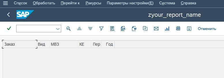 Теперь у вас есть структура zyour_output_structure в вашей системе SAP. Вы можете использовать её для хранения и отображения результатов выборки в вашем ABAP-отчете. Не забудьте заменить 'zyour_output_structure' на имя вашей структуры в коде, который был предоставлен ранее.