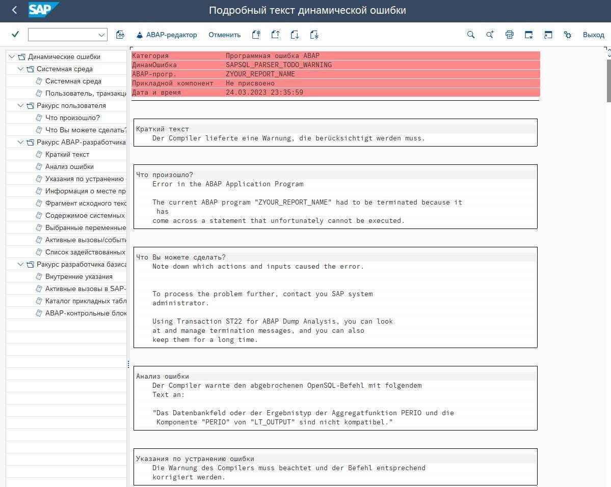 В целом, для решения этой ошибки необходимо убедиться в правильности типов данных и присвоения значений в запросе, а также в правильном использовании агрегатной функции "PERIO". Если проблема не устраняется, необходимо обратиться за помощью к разработчику или администратору системы.