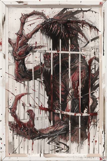 Схватив шмат когтистой лапой, заливая кровью белоснежные, не очень-то и высокие, заостренные прутья клетки, оно буквально разом затолкало его внутрь громадной, клыкастой пасти и проглотило не жуя. Лишь шевелились странные, длинные хитиновые щупальца-усы на том месте, где должна была находиться морда. Попутно, с неприятным скрежетом, напоминающим лязг ржавого металла, терлись друг о друга хитиновые пластины на внешне гуманоидном теле.