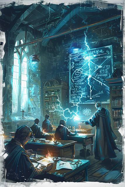 Вскоре свет в учебниках погас, а на вот на доске так и остались чертежи и символы, разве что теперь они не сияли, а выглядели так, будто их выполнили самым обычным мелом.