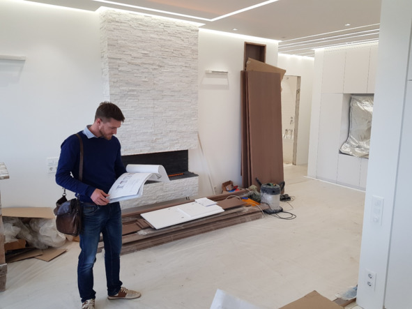 Если это ваша ситуация, то знайте, что вы можете ещё до момента сдачи квартиры застройщиком попасть в помещение (ещё на стадии строительства, но, когда уже есть возведённые перегородки). Для этого нужно просто договориться с менеджером от застройщика, представителями застройщика и дать дизайнерам попасть в квартиру для снятия замеров помещения. В принципе, на этом этапе вы можете даже не ехать туда самостоятельно, а просто договориться с застройщиком, чтобы он пустил дизайнеров для снятия замеров.