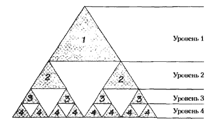 Это было явное мошенничество: Понци откровенно врал людям относительно того, во что будут вложены их деньги. В схожей схеме, которая называется пирамидой, обманывать инвесторов необязательно — ее мемы работают «откровенно». В рамках типичной пирамиды создается организационная схема в виде треугольника; на ее вершине — одно имя. Под ним, на втором уровне, два других человека, под каждым из этих двух — еще двое, то есть на третьем уровне находятся четыре человека, и на четвертом, — будем считать его последним уровнем пирамиды — восемь.