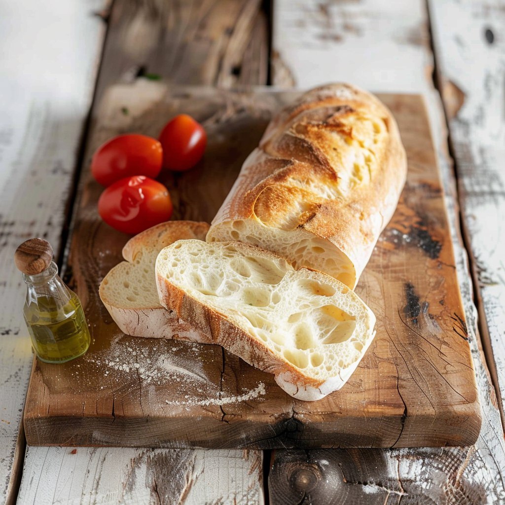 Чиабатта готовится из пшеничной муки, воды, дрожжей, соли и оливкового масла. Тесто для чиабатты очень влажное, что придаёт хлебу его уникальную текстуру и воздушные, крупные "дырки" в мякише. Она идеально подходит для сэндвичей, подается к супам, салатам и может использоваться в качестве основы для брускетты. Чиабатта – универсальный хлеб, который стал любимцем во многих странах мира.