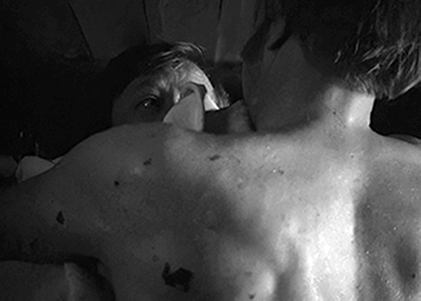 Однако есть и более важное неуловимое сходство: в «Обломове» Михалков находит общий язык с позднесоветской аудиторией, мелодраматически переосмысляя как само действие романа, так и обломовщину. На уровне действия Михалков, вместо того чтобы идти за текстом Гончарова и пытаться кинематографическими средствами передать скрупулезный и очень пространный анализ внутреннего мира героя, показывает конфликт между Обломовым и Штольцем в завуалированно сексуальном ключе. Михалков переосмысляет сюжет Гончарова так, что возникает любовный треугольник «Штольц – Ольга – Обломов». На уровне фактуры Штольц, Обломов и Ольга опять же представлены средствами телесной театральной эстетики: их отношения выражены не столько на когнитивном уровне, сколько на плотском. Например, один из ключевых переломных моментов в первой серии связан с эпизодом, где Обломов и Штольц идут в баню. Штольц, демонстрируя стальную волю, выбегает из бани, натирается снегом, а потом, зачерпнув горсть снега, пытается натереть и Обломова и повторяет: «Теперь или никогда». После нескольких попыток его интонация из шутливой превращается в угрожающую; камера направлена прямо на затылок Штольца, поэтому мы видим, как в жесте его голых рук, держащих голого Обломова, проступает агрессия. Когда Обломов наконец жалобно скулит, сцена начинает явно напоминать изнасилование. Этот эпизод уже предвосхищает будущее сексуальное предательство Штольца по отношению к другу. Обломов же не способен на акт символического сексуального насилия, необходимый, по подразумеваемым в фильме представлениям о сексуальности, чтобы увенчать его романтические отношения с Ольгой. Поэтому в эпизоде кульминации отношений с Ольгой, догнав возлюбленную среди деревьев, Обломов не в состоянии довершить свое завоевание и поцеловать ее; вместо этого он бормочет, как опасно, если их увидят наедине. Эта сцена, как и эпизод в бане, снята в упор, только на этот раз камера смотрит в затылок Обломова, к которому уже тянутся руки Ольги, отступающей при виде его нерешительности.