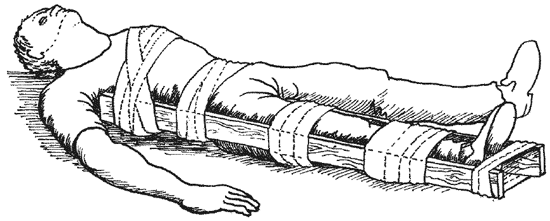 После того как кровотечение остановлено, а раны защищены от дальнейшего загрязнения, нужно подготовить пострадавшего к транспортировке таким образом, чтобы ходьба, перекладывание с места на место, тряска при езде не увеличивали его мучений.