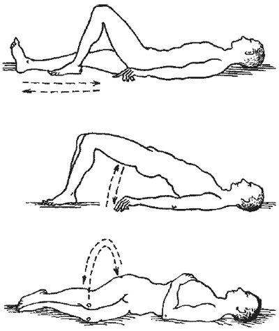 Попытайтесь сделать что-то вроде «мостика»: согнув обе ноги в коленях и упершись в постель пятками и лопатками, попробуйте оторвать ягодицы от постели.