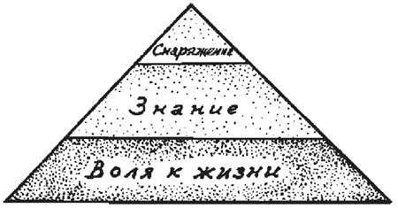Пол Уайзмен начинает с изложения базовых принципов теории и практики выживания. Эти принципы образуют пирамиду, демонстрирующую суть процесса выживания (в нашем случае реабилитации).