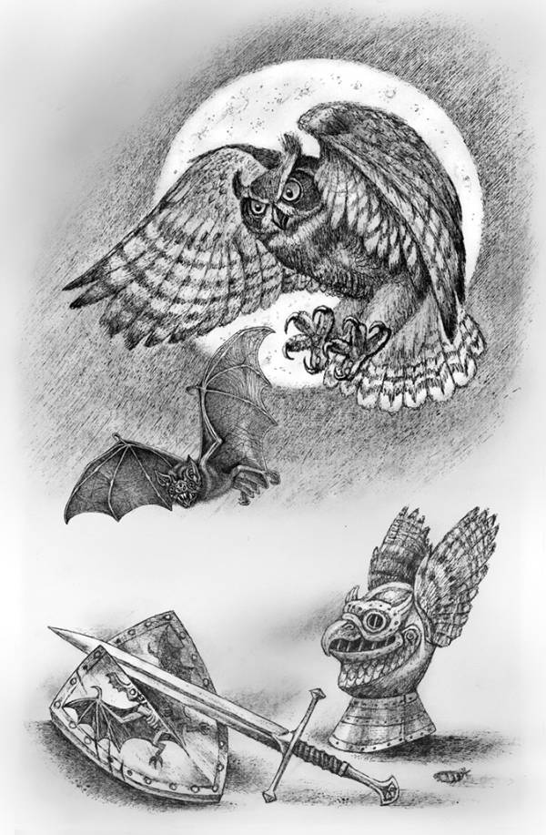– Но я ничего не знал ни о фамилии Ostroviczy, ни о фамилии Tellara, а между тем ясно видел на Сугробиной красное платье с летучей мышью, а на латах Теляева изображение филина.