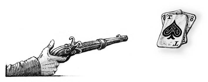 Германн сошел с ума. Он сидит в Обуховской больнице в 17-м нумере, не отвечает ни на какие вопросы и бормочет необыкновенно скоро: «Тройка, семерка, туз! Тройка, семерка, дама!..»