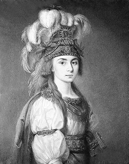 Неизвестный художник. Актриса Прасковья Жемчугова в роли Элианы («Браки Самнитян» А. Гретри). XVIII в. Музей-усадьба Останкино, Москва