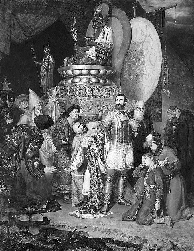 Василий Смирнов. Князь Михаил Черниговский перед ставкой Батыя. 1883 г. Государственная Третьяковская галерея, Москва