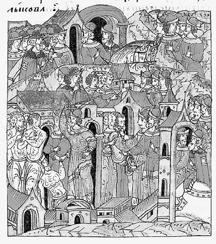 Тверское восстание 1327 года. Миниатюра из «Лицевого свода». XVI в. Библиотека Российской академии наук, Санкт-Петербург