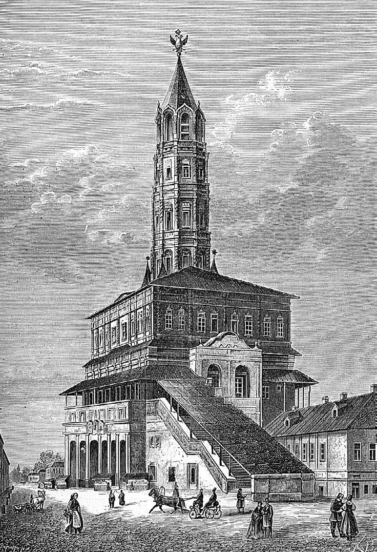 Сухарева башня. 1870 г. Иллюстрация из русского еженедельного журнала «Нива»