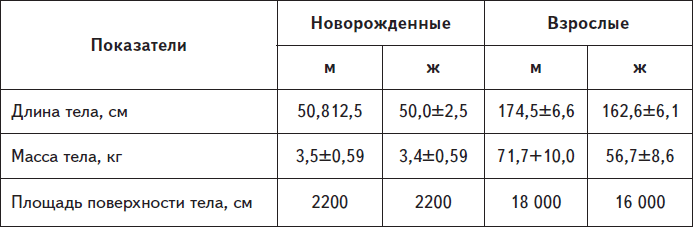 Большинство антропометрических показателей имеют значительные индивидуальные колебания. Приводим усредненные показатели (табл. 4).