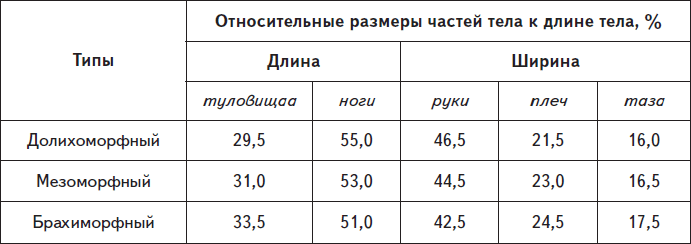 Таблица 5. Характеристика пропорций тела человека (по П. Н. Башкирову)