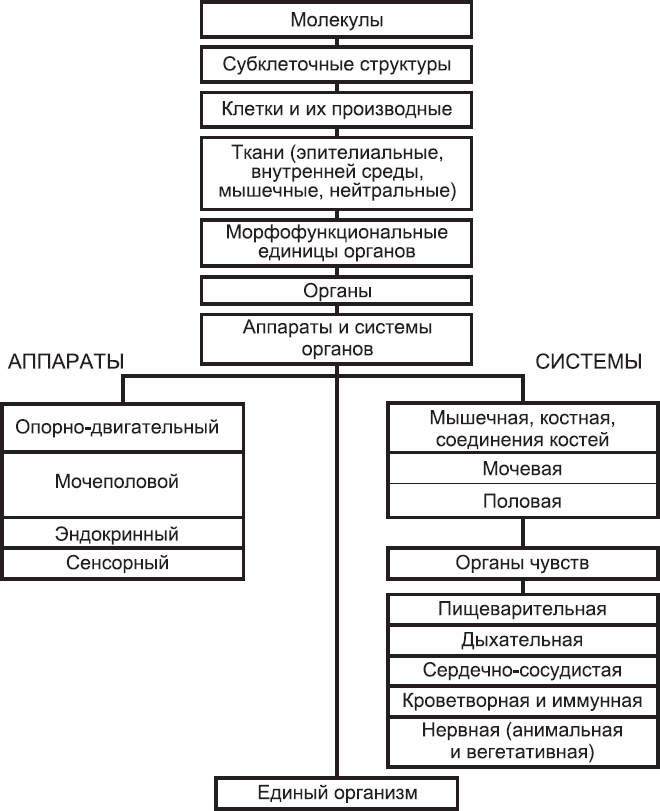 Организм целостен, но построен по иерархическому принципу (табл. 1).
