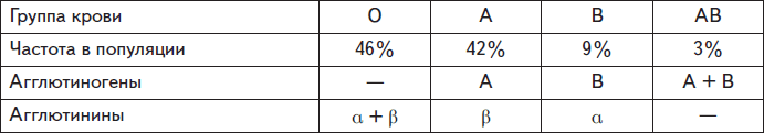 В 1900–1901 гг. австрийский ученый К. Ландштейнер открыл группы крови. В 1930 г. ему была присуждена Нобелевская премия «за открытие групп крови человека». Эритроцит покрыт плазмолеммой толщиной около 7 нм, в которую встроены антигены систем АВО и резус. Антиген – это любое вещество (обычно в его состав входит белок), которое способно вызвать иммунную реакцию. Иммунная реакция – это ответ организма на внедрение чужого агента. В плазме крови каждого человека имеются антитела против антигенов эритроцитов, которые не содержатся в его собственной крови. Антитело – это молекула белка, которая вырабатывается одной из клеток иммунной системы в ответ на внедрение антигена. К. Ландштейнер описал четыре группы крови (табл. 18). Он обнаружил, что при смешивании плазмы крови одного человека и эритроцитов другого часто происходит их агглютинация (склеивание). Это приводит к закупориванию мелких сосудов, что может привести к смертельному исходу.