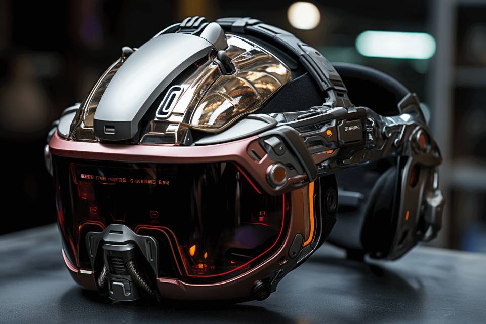 Первый шлем произвели в Китае, и он выглядел как набор блестящих пластиковых пластин вперемешку с металлическими. Все вместе они создавали впечатление головы какого-то пришельца с далекой планеты. Визор был прозрачно-голубым из айс-протекта. Это, кстати, неплохо, лучше, чем нано-стекло. В шлем не забыли встроить функцию управления дроидом при помощи мышц лица. В общем, навертели много всего, но отзывы, увы, были соответствующие. И выглядел он как-то попсово.