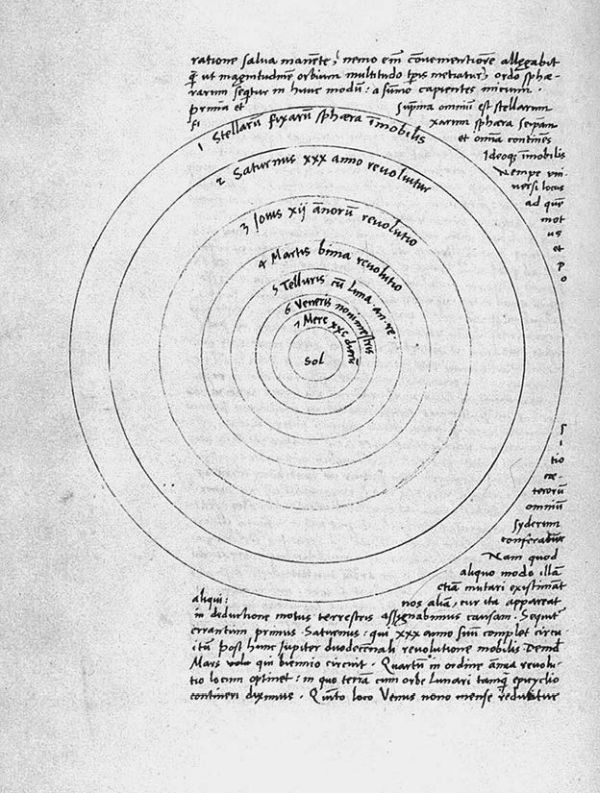 В 1543 г. Коперник издал в Нюрнберге сборник из шести книг «О вращении небесных сфер», где предложил гелиоцентрическую модель мира, которую он разрабатывал свыше 30 лет. (Опубликовать труд убедил Коперника его единственный ученик Ретикус.)