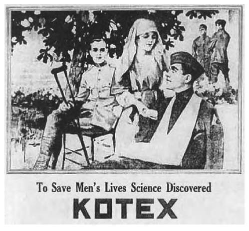 Реклама была создана в 1920 году. Это прототип самой первой рекламы прокладок «Kotex». Почти сразу журнал отказался от нее, потому что художник, предлагая продукт для женщин, изобразил на плакате слишком много мужчин.