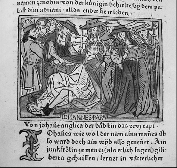 Папесса Иоанна разрешается от бремени во время религиозной процессии