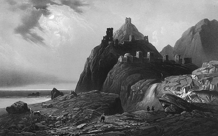 Вид на крепость в Судаке. Гравюра К. Боссоли. 1856 г.