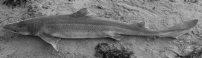 Размеры черноморских акул небольшие – 1,2–1,5 метра. Двухметровые встречаются редко. Окраска веретеновидного тела не яркая, серо-бурая, со светлыми пятнышками по бокам. Брюхо белое. Рот, как у всех акул, большой, поперечный, расположен снизу. Хвост мощный, с разнолопастным плавником.