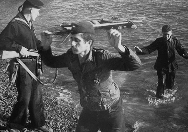 Эвакуация немцами производилась интенсивно, причем войска и техника в ряде случаев размещались во внутренних помещениях плавсредств, а на палубах размещались предатели в гражданской одежде, снабженные белыми простынями, чтобы ими давать соответствующие сигналы нашей авиации, в целях предотвращения бомбежки судов (т. е. «гражданского населения»).
