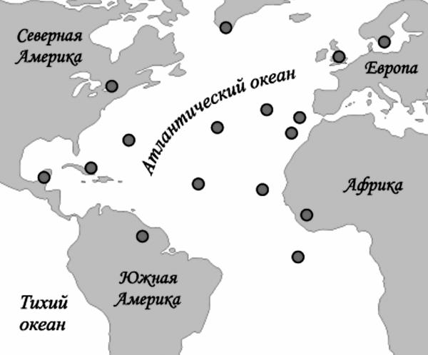 Места в Атлантическом океане, куда различные исследователи помещали Атлантиду
