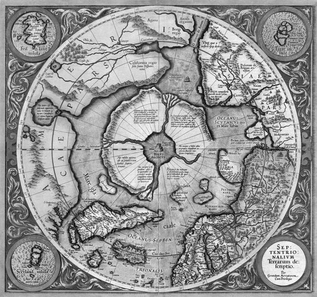 До сих пор факт существования Арктиды-Гипербореи не был подтвержден ничем, кроме древнегреческих легенд и старых гравюр (например, картон Герарда Меркатора, изданный в конце XVI в.). В центре изображен легендарный материк Арктида, вокруг – побережье Северного океана с легко узнаваемыми современными островами и реками.