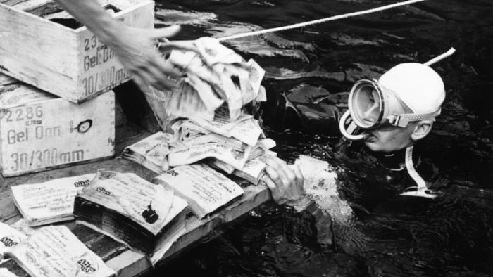 Водолазы поднимают документы нацистов со дна озера Топлиц.