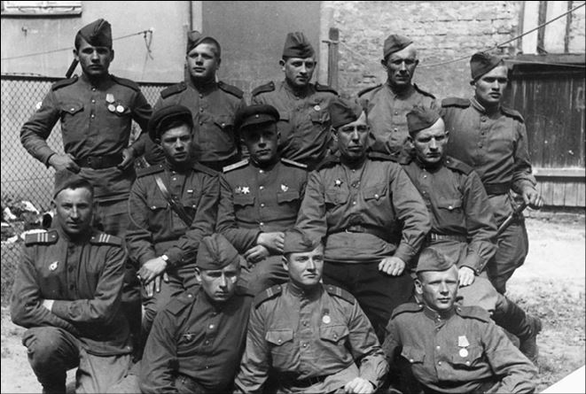 Групповой снимок офицеров, сержантов и солдат отдела контрразведки Смерш 70-й армии. 1945 г.