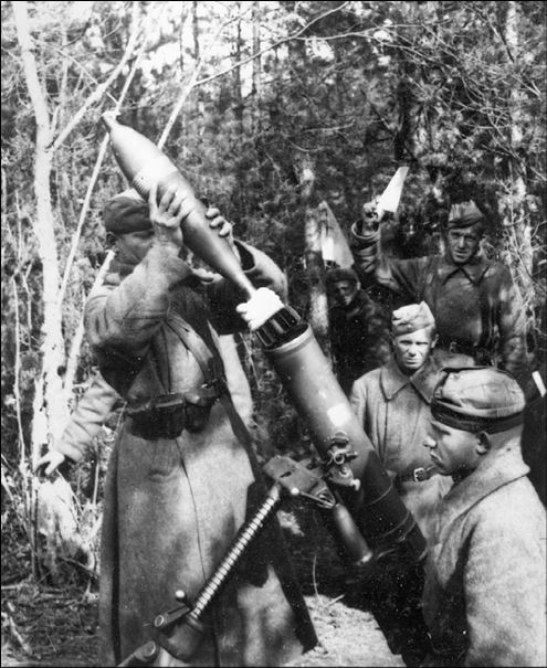 Минометчики 247-й стрелковой дивизии ведут огонь по противнику в районе Ржева