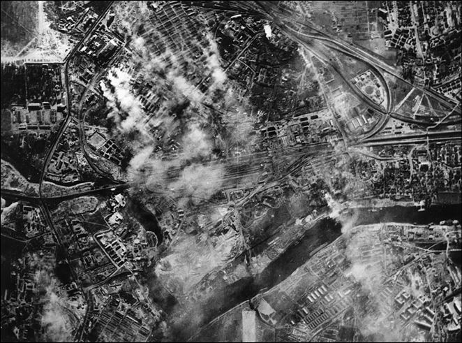 Аэрофотоснимок пожаров после налета немецкой авиации на Москву. 1941 г.