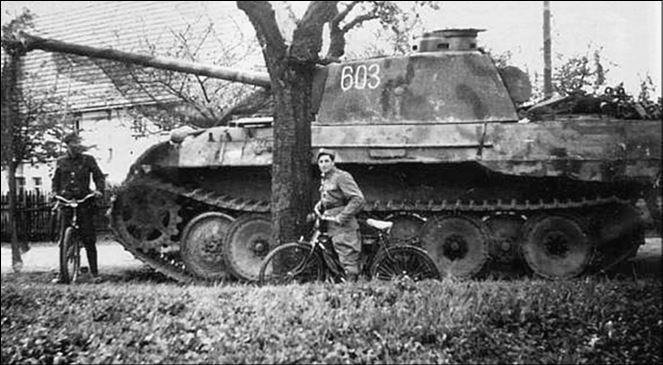 Танк «Пантера», подбитый польскими войсками. Район Баутцена, апрель 1945 г.
