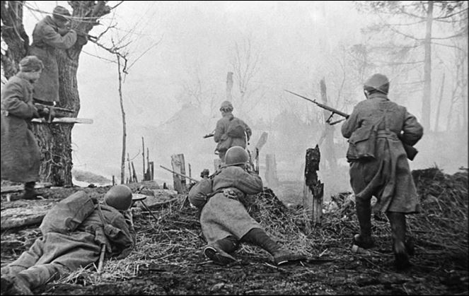 Советские солдаты в уличных боях за освобождение Праги. 1945 г.