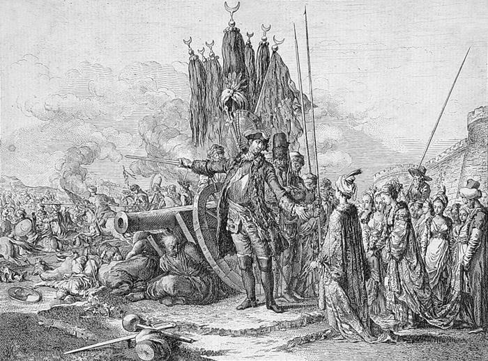 Взятие А.М. Голициным Хотина. 1769 г. Гравюра XVIII в.