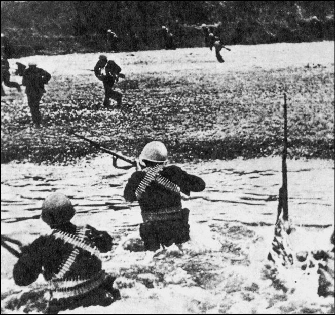 Высадка частей 51‐й армии на северо-восточное побережье началась утром 26 декабря 1941 года с опозданием и не во всех намеченных пунктах. Проходила она в тяжелых условиях. Температура воздуха упала до 10–15 градусов ниже нуля, море штормило, кромка льда у берега препятствовала подходу судов. Ни Черноморский флот, ни Азовская флотилия не имели специальных десантных средств для выгрузки техники и высадки войск на необорудованное побережье. Доставленные к району высадки солдаты прыгали в ледяную воду и брели к берегу, где окапывались в ожидании следующей волны десанта. Многие, особенно раненые, замерзли, так как 27 декабря шторм усилился, движение судов по проливу было запрещено и возобновилось лишь сутки спустя. Несмотря на противодействие со стороны противника, советским войскам численностью 14 000 бойцов удалось захватить ряд плацдармов по обе стороны Керчи и на северном побережье полуострова. Словно в насмешку над невероятными усилиями людей, пролив через два дня сковало льдом, и основные силы десанта переправились в Керчь пешком.