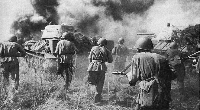 Пехота и танки в районе Прохоровки